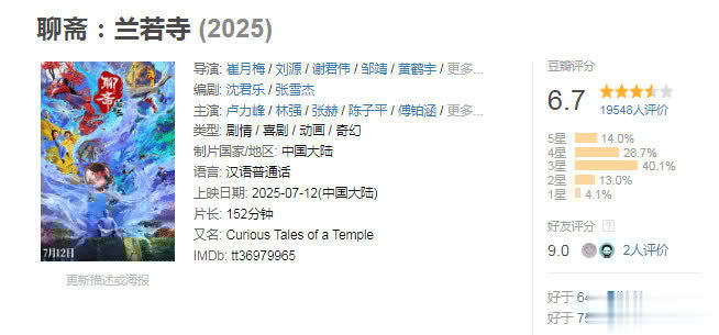 《聊斋:兰若寺》豆瓣只拿到6.7分不冤枉,展望唯一2亿多的票房也不冤枉。