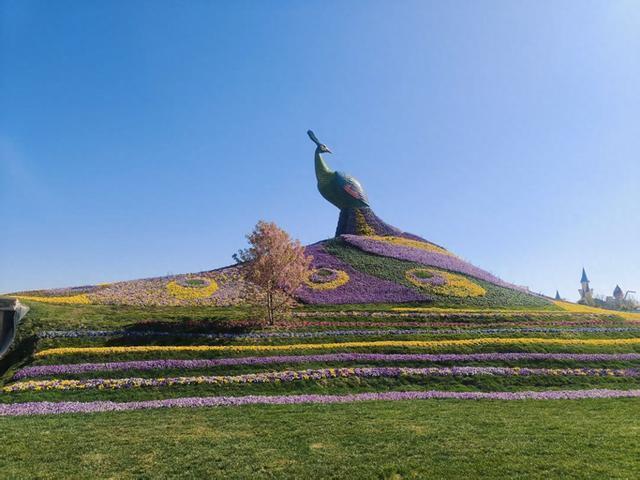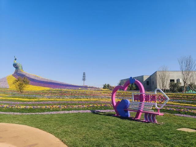 滇畔花坞坐落于呈贡斗南滇池湿地公园东南门南侧,表情总预算1100万元,实质总投资超1180万元,涵盖土建铺装、景不雅小品、植栽工程、给排水、电路照明等多个板块。其中植栽工程耗资720余万元,全心打造十大特质景不雅区域,各有亮点、四季皆可赏:中枢的3000平方米孔雀花海,以地面为画布,用黄、紫、蓝三色共5万盆鲜花堆砌成昆明第二大孔雀造型,左近点缀蝴蝶、蜜蜂造型花带与花瀑景不雅,高空俯视宛如一幅流动的彩色织锦;18亩郁金香园坐拥16万株近30个品种,分两批交替怒放,春节工夫首批插足盛花期,三八妇女节前后第二批链接登场,放纵氛围拉满;月季园从河南南阳引进300余株古桩名贵月季,搭配7-8月盛放的荷花圃,勾画出“春赏月季夏不雅荷”的精致季相;多肉及沙生植物园区融入云南野生菌、大象、九重拱门等地域特质造型,辨识度都备;25亩百花圃采集近50个品种20万盆鲜花,梯旷野区则用5万余盆七色鲜花铺就头绪感景不雅;名木园拔擢青香木、蓝花楹等120余株颠倒苗木,果林园培育30余株果树,再搭配峻岭杜鹃盆花区、微盆景园、三角梅区,全所在遮盖不同花草深爱者的不雅赏需求。