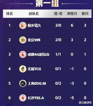 要知谈,1组全齐算得上是三大分组的“地狱组别”,因为这一组有着挑杯冠军WB、手抓多个冠军的AG,且从KGL赛区来的情久、TCG齐在这。若是在开赛前,我说桐乡情久不错拿到三连胜,并登顶1组榜首,深信好多不雅众齐是不信的,但事实是这支军队作念到了。