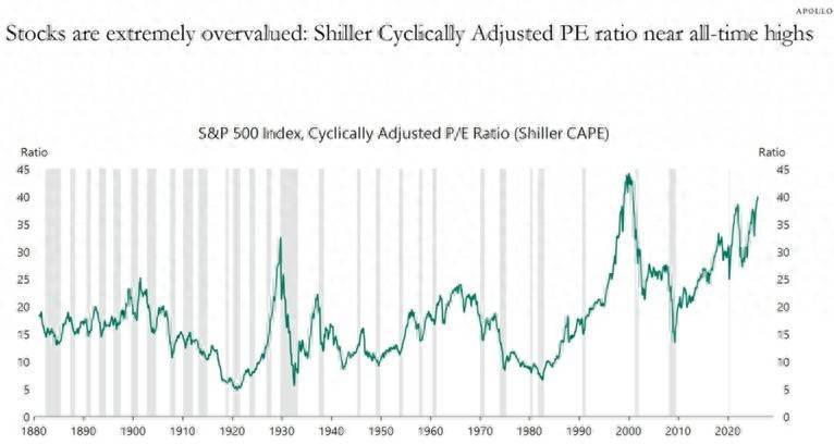 阿波罗的数据清楚,面前约 39 的读数比历史平均水平非凡了一倍多。这意味着改日 10 年的预期年化答复率可能会相配低,致使为负。