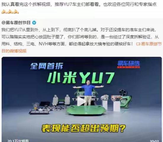 拆解当晚,雷军在微博转发视频片断并配文:“已崇拜看完拆解,接待业内众人赓续拍砖,咱们通盘把产物作念得更好。”这条发文激发庞大互动,网友对品牌直面质疑的魄力暗意认同,也有从业者建议进一步检测建议。随后,小米汽车官方账号发布长图,对成立改造、产能与质检等问题作念出见解。工场现实三班制,每台车下线前需通过多项抽检,陈说按时向监管部门备案并择期公开。这些修起试图缓解市集对产物性量的疑虑。
