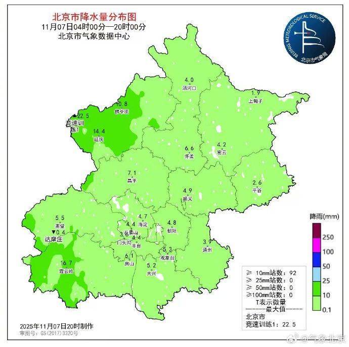 现在体育游戏app平台,北京市大部分地区降水已显着削弱。甩手今天20时,全市平均降水量5.7毫米,城区平均4.6毫米;最大降水量在延庆竞速进修1站,22.5毫米。最近一小时(19-20时)最大降水量在顺义大孙各庄,0.7毫米。