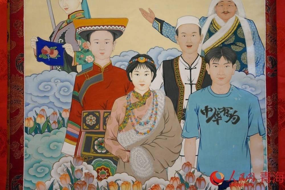以民族相助为主题的唐卡作品。东说念主民网记者 况玉摄